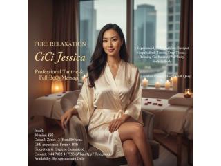 Experience the art of pure relaxation with a professional tantric full-body massage by CiCi Jessica, a British beauty with an oriental charm and an avant-garde soul. Based in Canary Wharf, South Quay, I provide a deeply relaxing and rejuvenating session designed to ease stress, tension, and fatigue while awakening your senses.